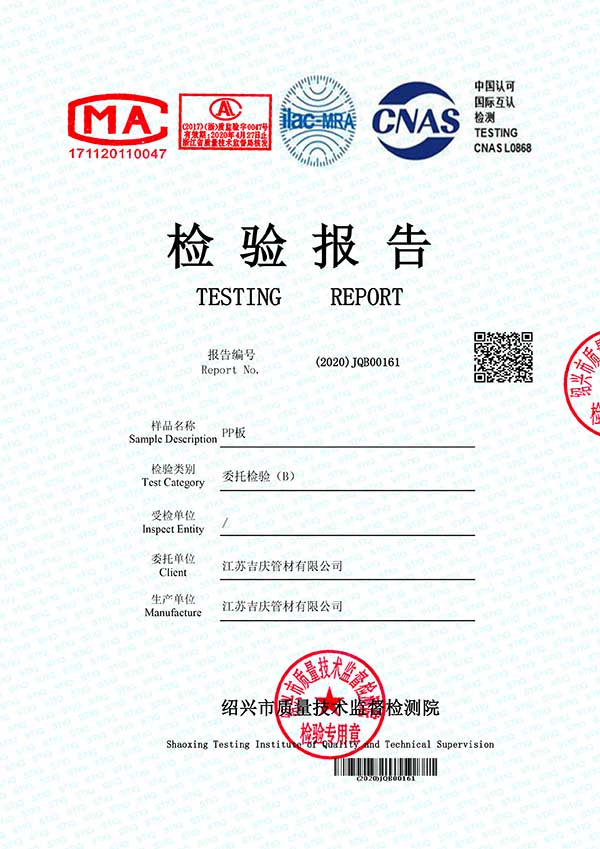 江蘇吉慶管材集團(tuán)有限公司創(chuàng)辦于2010年2月,是pp管,pp管材,pp管件,pp風(fēng)管,frpp管,frpp管材,pph管,pph管材,pph管件,pph風(fēng)管,pvdf管,pvdf管材,pp儲(chǔ)罐,pp板材的專業(yè)化生產(chǎn)企業(yè)。公司占地30余畝,擁有各類資產(chǎn)8000余萬(wàn)元,專業(yè)技術(shù)人員20余人,管材生產(chǎn)線10條,管件生產(chǎn)線11條,具備了10000余噸各類防腐塑料制品的年生產(chǎn)能力。公司通過(guò)了ISO9001-2000質(zhì)量體系認(rèn)證,同時(shí)被評(píng)為AAA信用單位,2018年公司被評(píng)為高新技術(shù)企業(yè),此后陸續(xù)取得安全生產(chǎn)管理證書等榮譽(yù)。公司位于水上花園城市----江蘇省揚(yáng)中市八橋鎮(zhèn)永福路18號(hào),交通便捷,可直接導(dǎo)航至公司園區(qū)內(nèi)。公司全體員工將以高度的敬業(yè)精神,嚴(yán)格的質(zhì)量控制理念和科學(xué)的管理方法,及時(shí)周到的服務(wù),竭力為我國(guó)塑料管道在各領(lǐng)域的推廣和應(yīng)用作出更大的貢獻(xiàn)!